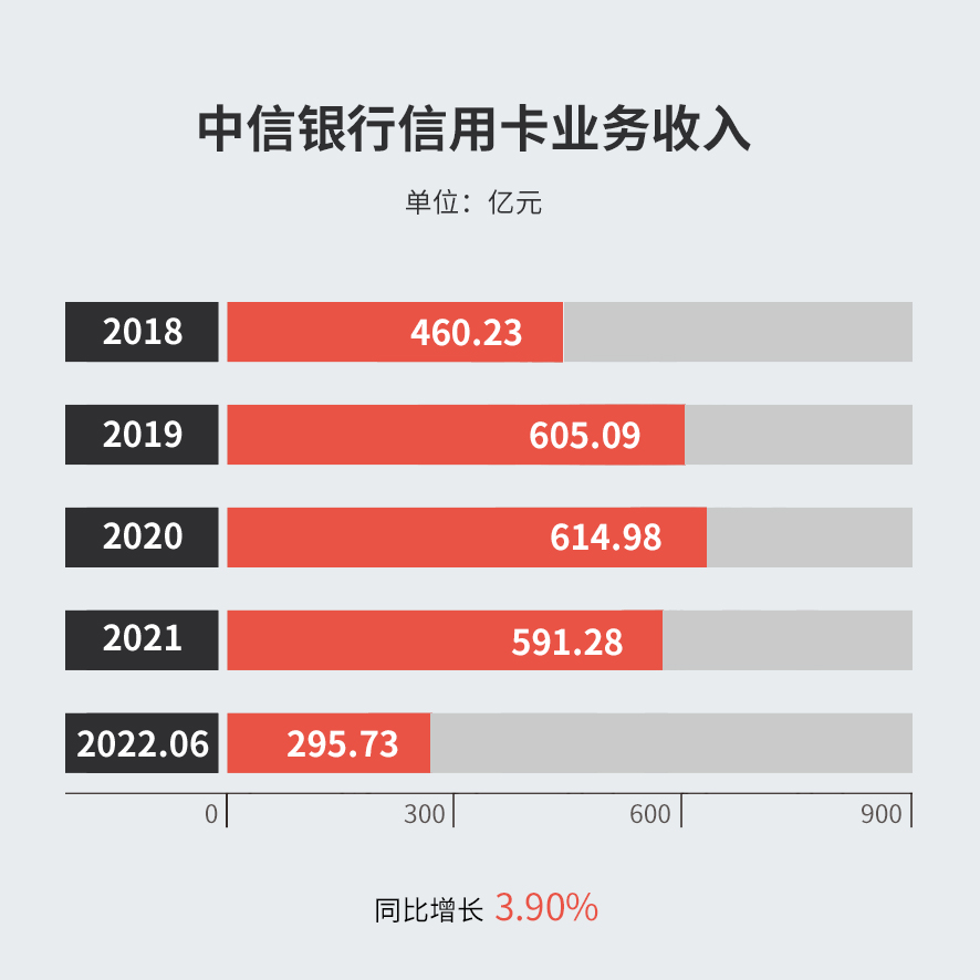 2022年上半年,中信銀行信用卡收入295.73億元,同比增長3.90%。? ??