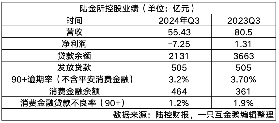 但這些都是征求意見稿,截至目前,正式的小貸管理辦法仍未落地。究竟小貸公司、網(wǎng)絡(luò)小貸公司分別會如何準(zhǔn)入?業(yè)務(wù)可以如何發(fā)展?尤其是屬于地方金融組織的小貸公司要開展全國業(yè)務(wù)究竟有何門檻?市場一直在持觀望姿態(tài)。在正式的監(jiān)管文件還未落地之前,我們看到最近幾年很多大集團轉(zhuǎn)讓甚至直接注銷了旗下的小貸公司,但也有公司,選擇在這個時候出手拿下小貸牌照。在今年5月,一家黑龍江的小貸公司——黑龍江金聯(lián)云通小額貸款有限公司,發(fā)生股權(quán)變更,原來的股東東方金聯(lián)供應(yīng)鏈管理集團有限公司退出,新增了4個股東,分別是——3、錦炯(深圳)科技服務(wù)有限公司持股20%;4、未鯤(上海)科技服務(wù)有限公司持股20%。這幾個股東都是老面孔了。穿透來看,這家黑龍江的小貸公司由陸金所控股100%持股。與此同時,該公司的法定代表人變更為尹源,執(zhí)行董事為陳東起。前者是平安普惠信息服務(wù)有限公司的法定代表人;后者是平安消費金融、上海陸金所信息科技股份有限公司法定代表人。最近陸金所控股的2024年三季度投資者電話會中,披露了這張小貸牌照的發(fā)展——今年7月份獲得了全國性的小額貸款牌照。今年8月,根據(jù)新獲得的全國性小貸牌照開始提供新的貸款。截至第三季度末,該小貸牌照提供了超過10億元人民幣的新貸款。陸控還表示,這個新的小額貸款牌照可助力其進一步降低融資成本,使產(chǎn)品組合多樣化,并提高資本管理效率。值得一提的是,其實今年8月的小貸公司征求意見稿并沒有對全國性網(wǎng)絡(luò)小貸牌照提出明確的要求,只提到了一點“網(wǎng)絡(luò)小額貸款公司經(jīng)營區(qū)域的條件另行規(guī)定”。但在2022年該公司注銷了旗下的湖南平安普惠小貸;取消了深圳平安普惠小貸公司小貸相關(guān)經(jīng)營范圍并進行了改名,以及在2023年其旗下重慶金安小額貸款有限公司經(jīng)營范圍從全國性調(diào)整為了地方。另外一個有趣的點,今年5月哈爾濱道里區(qū)官方還在公開宣傳中提及——平安普惠信息服務(wù)有限公司收購的黑龍江金聯(lián)云通小額貸款有限公司是道里區(qū)政府招商引資項目。關(guān)于小貸公司、消費金融公司、銀行等機構(gòu)可以給地方貢獻(xiàn)多少稅收的事,我們以后再討論。(感興趣可以持續(xù)關(guān)注喲)再來看一看陸金所控股三季度的數(shù)據(jù)表現(xiàn),直接看圖:從去年開始,陸控就在持續(xù)轉(zhuǎn)型,向100%擔(dān)保模式過渡,各方面一直在壓降,所以其實Q3的各項數(shù)據(jù)下降也不意外。之前作者的文章也提及過他們的轉(zhuǎn)型重點,在此就不做過多贅述了。按照其之前的財報中透露的2024年的計劃——2024年末余額將在2,000億元-2,300億元之間。從其三季度的余額來看,似乎基本已經(jīng)達(dá)成之前計劃的全年目標(biāo)。截至三季度末,陸金所控股余額2131億元。另一個值得注意的點是其消費金融板塊,也就是平安消費金融的數(shù)據(jù)——截至三季度末余額464億元,占陸控總余額的22%。這一余額數(shù)據(jù)相較于去年同期增長了超100億,相較于二季度末的420億元而言,增長了44億元。從平安消費金融的這一余額增長情況來看,第三季度的消費金融市場,或許已經(jīng)在開始回暖?很期待其他家消費金融機構(gòu)的數(shù)據(jù),不知各家三季度的資產(chǎn)新增情況是否也好過于一、二季度?陸控在其財報和投資者電話會中都有提及第三季度普惠金融需求持續(xù)疲軟,預(yù)計小微企業(yè)主需要一段時間才能從最近于9月底頒布的刺激政策中獲益,陸控對業(yè)務(wù)戰(zhàn)略保持謹(jǐn)慎且勤勉的態(tài)度。同時,將更加重視非小微企業(yè)主客戶,繼續(xù)發(fā)展消費金融業(yè)務(wù)。降低金融機構(gòu)存款準(zhǔn)備金率、降低房貸利率等幫助房地產(chǎn)復(fù)蘇和增加流動性的措施,以及地方政府的一系列房地產(chǎn)和消費方面的刺激舉措。但最后也提及,仍然看到宏觀經(jīng)濟存在一些不確定性。