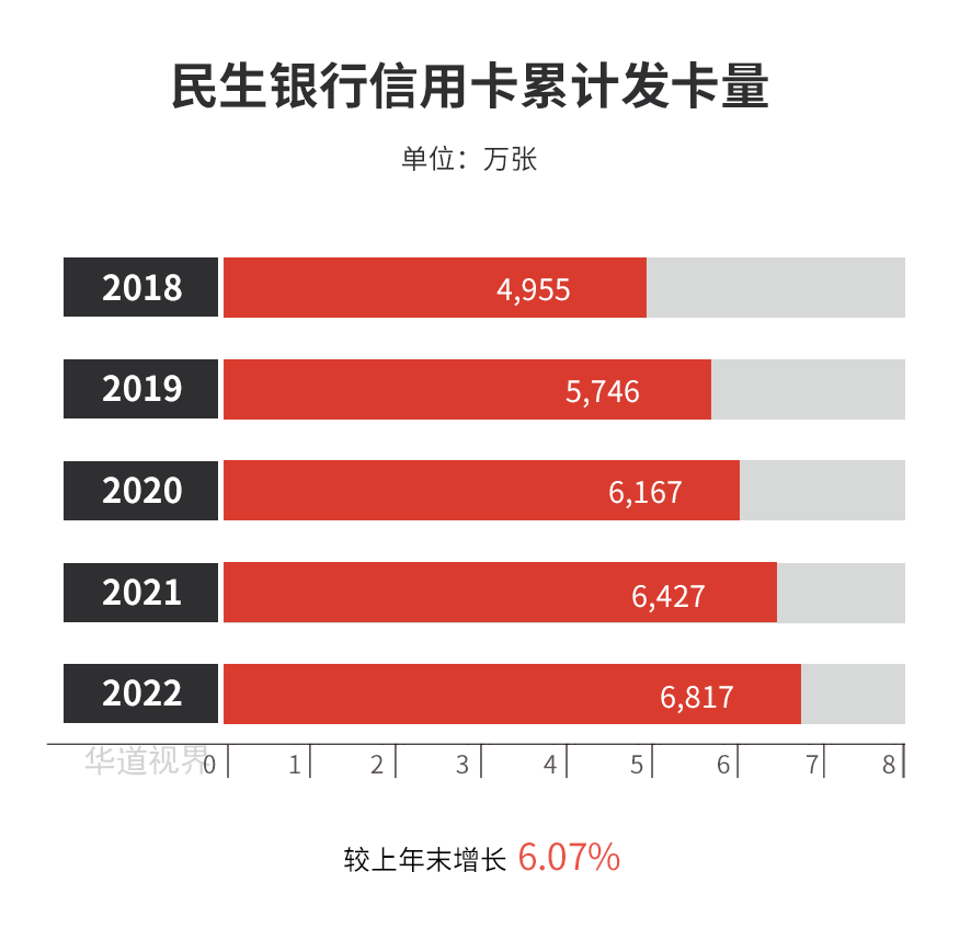 截至報告期末,民生銀行信用卡累計發卡6,817.31 萬張,比上年末增長6.07% ;新增發卡390.43萬張,同比增長50.32% ;