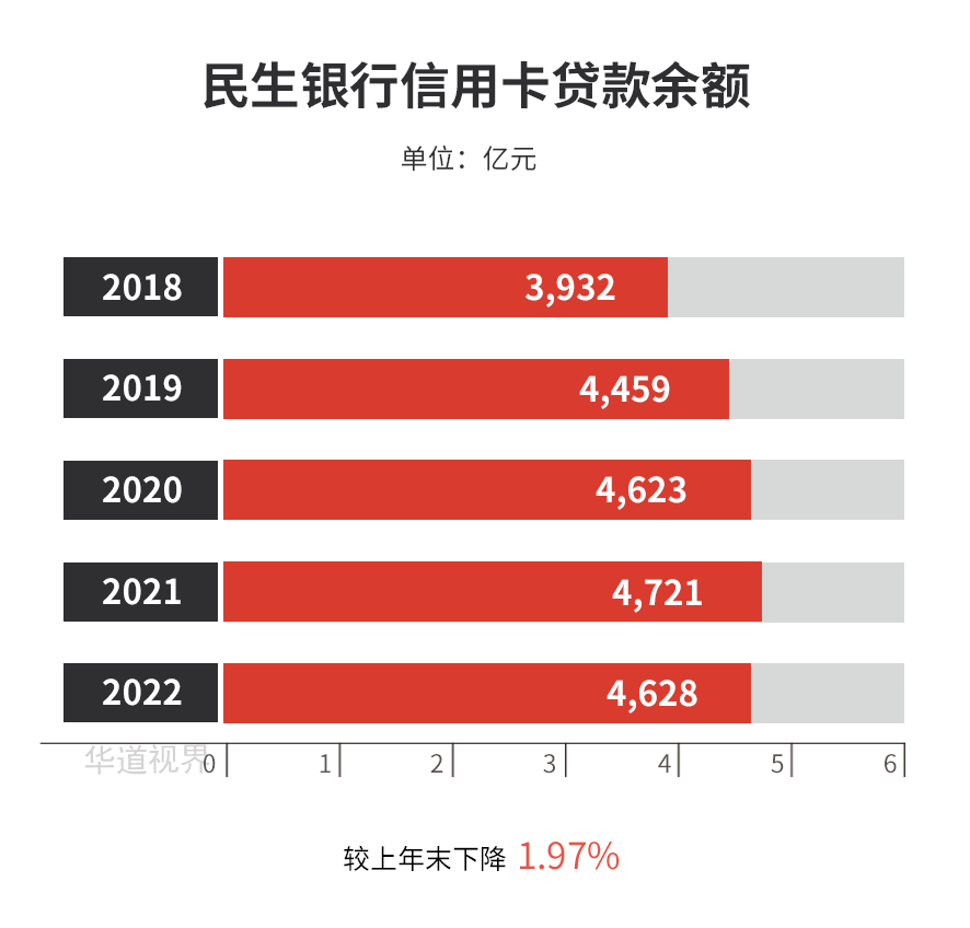 截至報告期末,民生銀行信用卡貸款余額為4,627.88億 元,比上年末下降92.89億元;