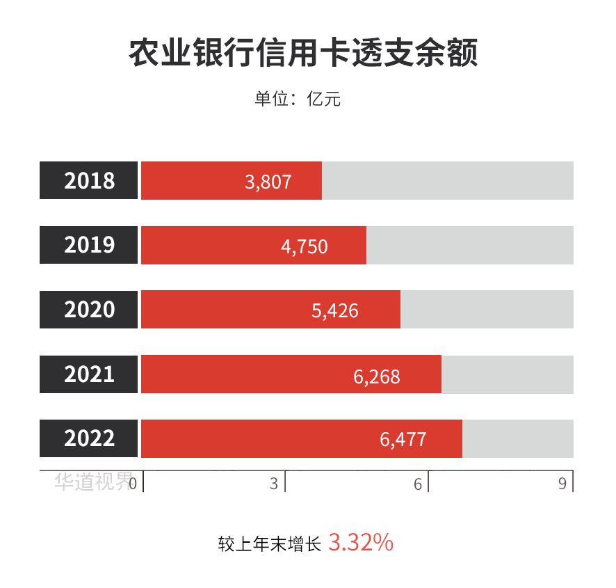 截至報告期末,農業銀行信用卡透支余額6,476.51億元,較上年末增長3.32%;