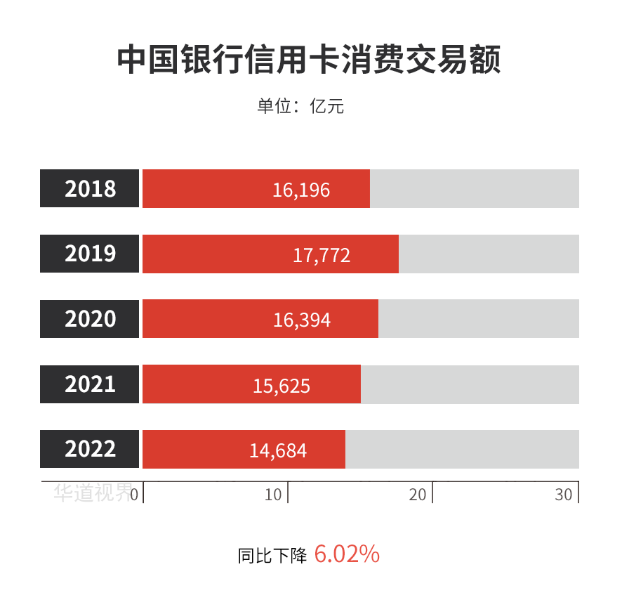 報告期內,中國銀行信用卡消費額14,683.78億元,同比下降6.02%;分期交易額為3,383.74 億元;