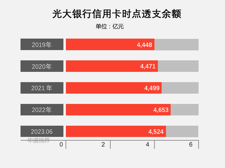 截至2023年6月末,光大銀行信用卡時點透支余額 4,523.76 億元;(不含在途掛賬調整)