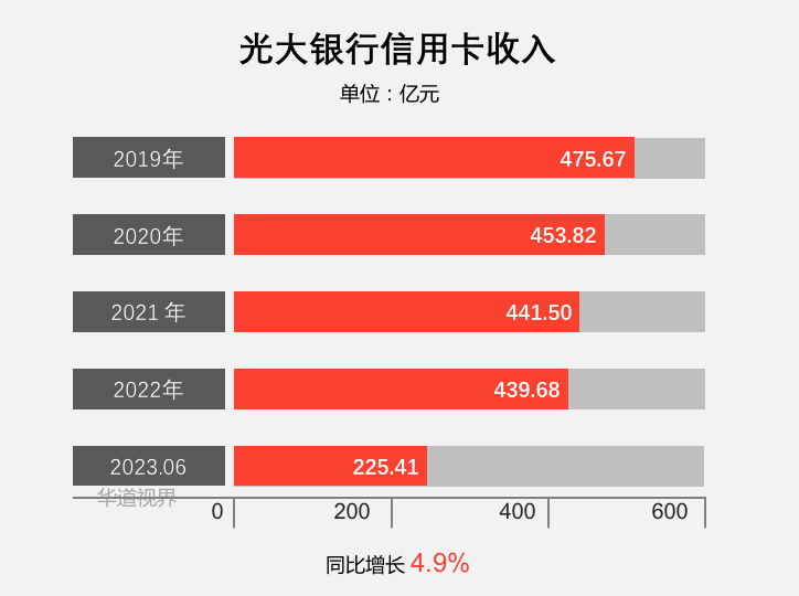 2023年上半年,光大銀行信用卡實現業務收入 225.41 億元,同比增長 4.90%。