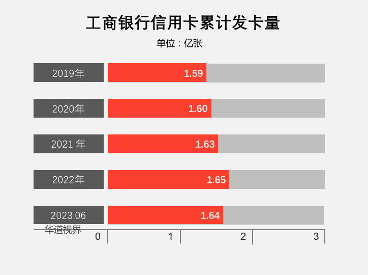 截至2023年6月末,工商銀行信用卡發(fā)卡量 1.64 億張;