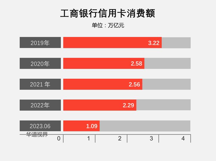 2023年上半年,工商銀行卡信用卡消費(fèi)額 1.09 萬(wàn)億元;