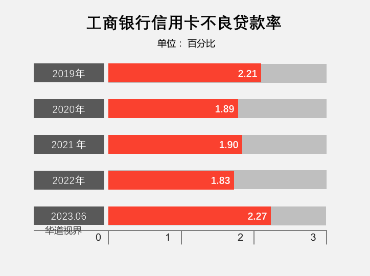 截至2023年6月末,工商銀行信用卡不良貸款 147.61億元,信用卡不良貸款率 2.27%。