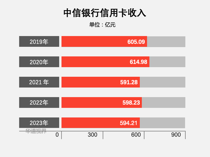 2023年,中信銀行實現信用卡業務收入 594.21 億元;