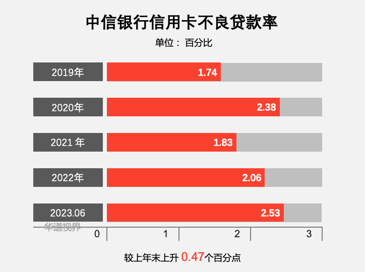 截至2023年末,中信銀行信用卡不良率2.53%,較上年末上升0.47個百分點;不良貸款余額131.98億元,較上年末增加26.78億元;