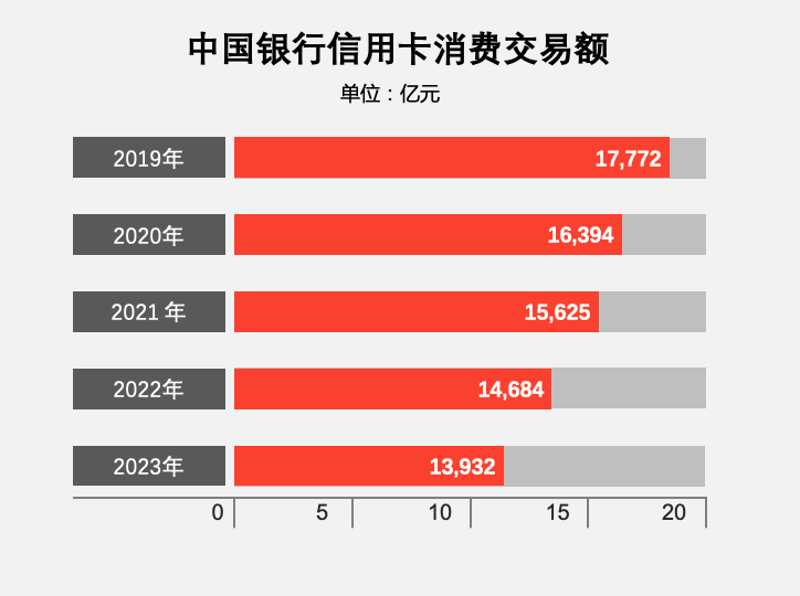 2023年,中國(guó)銀行信用卡消費(fèi)額13,932.35億元,信用卡分期交易額3,548.48億元;