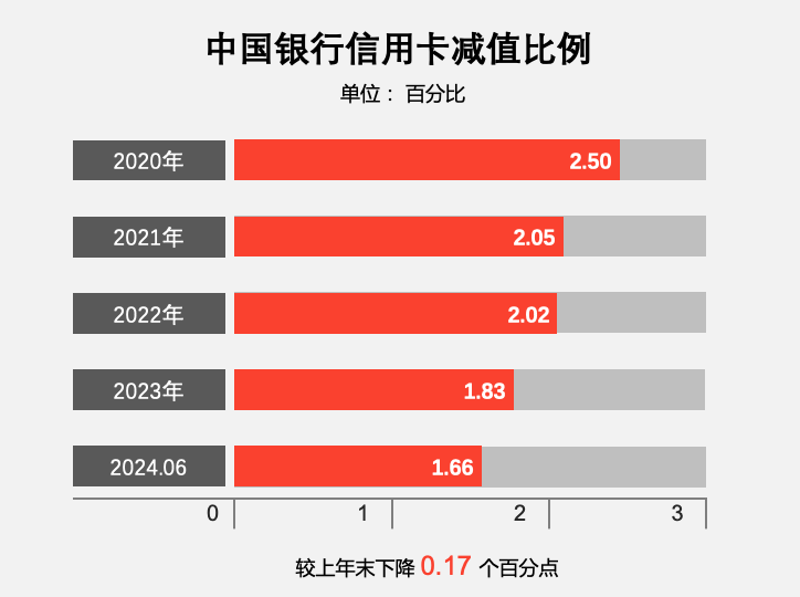 截至2024年6月末,中國銀行信用卡不良貸款97.04億元,減值貸款占比1.66%,較上年末下降0.17個百分點。