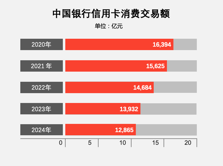 2024年,中國銀行信用卡消費額12,864.70億元,分期交易額3,466.80億元;