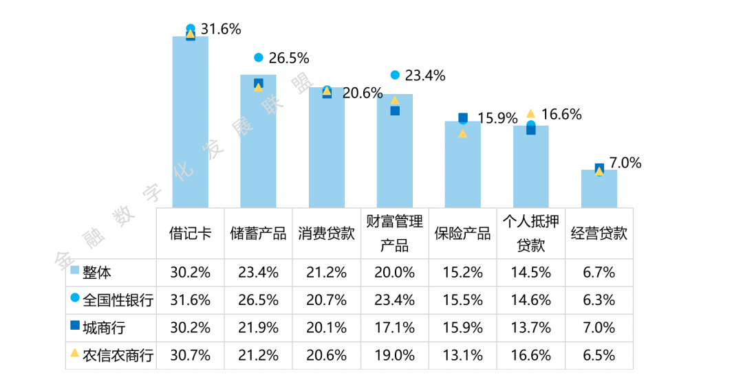 在銀行零售產(chǎn)品中,借記卡市場(chǎng)飽和度高,且由于“斷卡行動(dòng)”、沉睡賬戶(hù)清理等政策,很難實(shí)現(xiàn)大規(guī)模獲客;利率下行的背景下,儲(chǔ)蓄產(chǎn)品吸引力有限;保險(xiǎn)與財(cái)富管理業(yè)務(wù)消費(fèi)者門(mén)檻與教育成本較高;消費(fèi)貸業(yè)務(wù)僅面向具有資金需求的用戶(hù);車(chē)貸、房貸獲客多依賴(lài)合作渠道。相比之下,信用卡具有免息期、日常生活場(chǎng)景滲透率與使用率高頻、數(shù)字化體驗(yàn)好等優(yōu)勢(shì),是零售獲客的鉤子產(chǎn)品。在其他零售業(yè)務(wù)的轉(zhuǎn)化方面,信用卡業(yè)務(wù)具有重要貢獻(xiàn)。有66.1%的受訪(fǎng)機(jī)構(gòu)開(kāi)展了信用卡業(yè)務(wù)與其他業(yè)務(wù)的交叉營(yíng)銷(xiāo),較去年提升8.1個(gè)百分點(diǎn);在接觸過(guò)其他零售產(chǎn)品或服務(wù)信息的用戶(hù)中,有87.7%的用戶(hù)辦理了除信用卡以外的產(chǎn)品或服務(wù),較去年提升7.6個(gè)百分點(diǎn);超四成用戶(hù)會(huì)因?yàn)閷?duì)持卡機(jī)構(gòu)忠誠(chéng)度/喜愛(ài)度更高、或偏好一站式服務(wù)等原因,辦理發(fā)卡行的其他產(chǎn)品或服務(wù);針對(duì)目前尚未使用發(fā)卡行信用卡以外產(chǎn)品及服務(wù)的用戶(hù),近70%的用戶(hù)對(duì)未來(lái)辦理發(fā)卡行的其他產(chǎn)品展示出了較高意愿。圖13:信用卡用戶(hù)其他產(chǎn)品/服務(wù)的持有情況