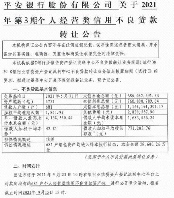 在嘗到了轉讓個貸不良資產包的甜頭之后,平安銀行又迅速打包了三個資產包即將于第四季度上線競拍,整體規模達到6.9億。平安銀行于今年相繼轉讓了幾個個貸不良資產包,而此能否影響該行2021年不良率走向,值得期待。