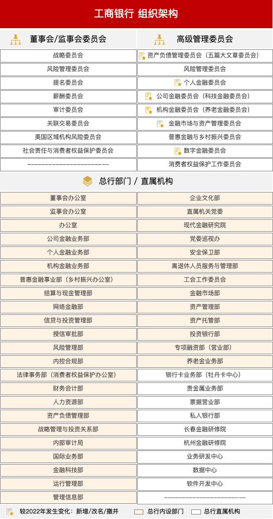 與2022年披露的信息對比,工行高級管理委員會有所變動,調整如下。