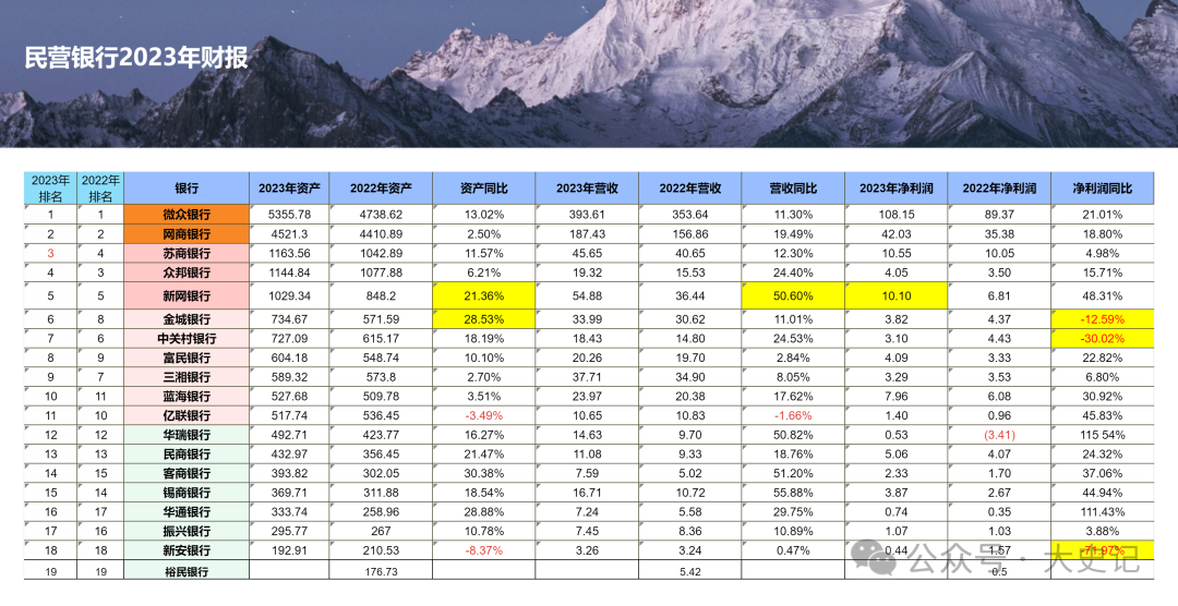 4月底各家銀行陸續披露了2023年財報,我們從財報中看一下民營銀行的江湖排名。從2014年首家民營銀行開業距今已經十年,十年時間民營銀行發展情況如何?