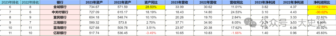 其中,金城銀行以734.67億元的資產規模排名第六,資產同比增長28.53%;但是凈利潤相比2022年下降了12.59%。不知是否與“存量風險處置三年攻堅戰”有關,還是近兩年小微貸款快速增長風險暴露,消耗掉了利潤?