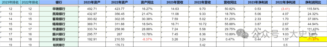 第四梯隊,總體排名變化不大。裕民銀行至今未發布財報,對總體排名應該影響不大。客商和錫商都比較客氣,與2022年相比,互換座次。華通銀行排名前進一位。華瑞銀行在新團隊帶領下扭虧為盈,總體表現有待進一步觀察。