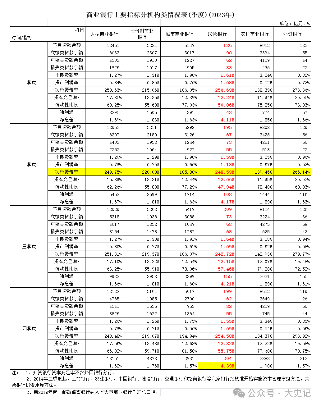 在監管總局公布的監管指標中,民營銀行最突出的是凈息差和資產收益率。以2023年四季度為例,民營銀行的凈息差高達4.39%,而城商行和農商行該指標為1.57%和1.9%,而不良貸款率卻低于兩類銀行,資產利潤率遠高于銀行業平均水平。