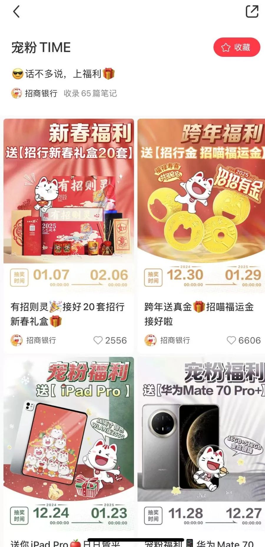具體來看,招商銀行小紅書官方賬號的介紹是“寵粉第一!搞錢第二!”,其有一個“寵粉TIME”的筆記合集,收錄65條筆記,都是增強(qiáng)與粉絲的互動的抽獎或者送禮活動。再以招商銀行發(fā)布的一則筆記為例,“當(dāng)J人和P人決定同時攢錢,J人:合理控制支出,加油攢錢買;P人:想買都先下單,月底苦兮兮……”該筆記將理財(cái)方式結(jié)合當(dāng)下年輕人熱議的MBTI人格,引發(fā)網(wǎng)友積極參與和關(guān)注,獲得高達(dá) 8.5萬的點(diǎn)贊量。