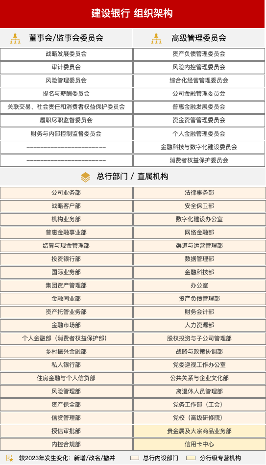 與2023年披露的信息相比,建設(shè)銀行組織架構(gòu)無變化。