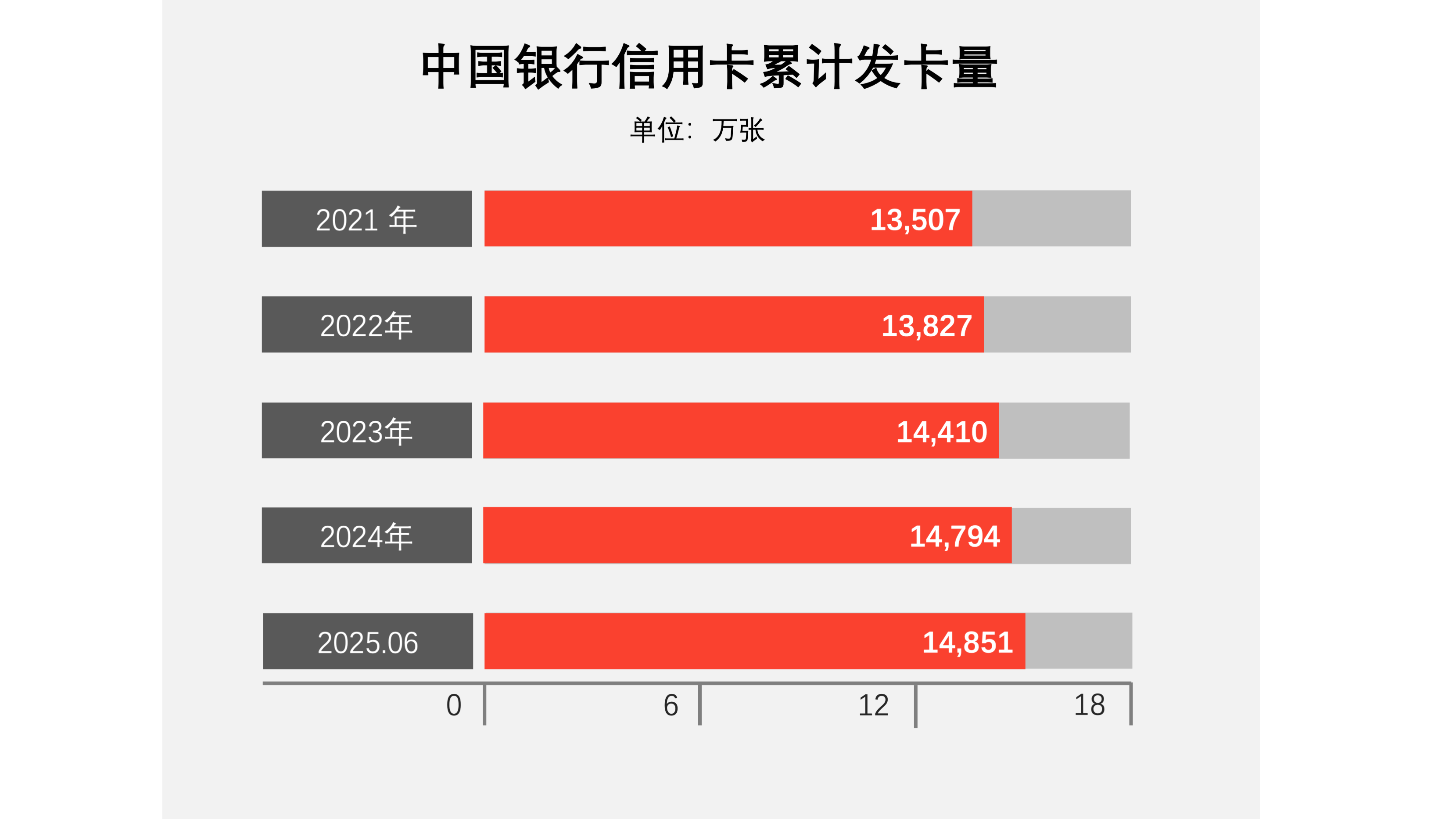 截至報告期末,中國銀行信用卡累計發卡量14,851.35萬張,較上年末略有增長;