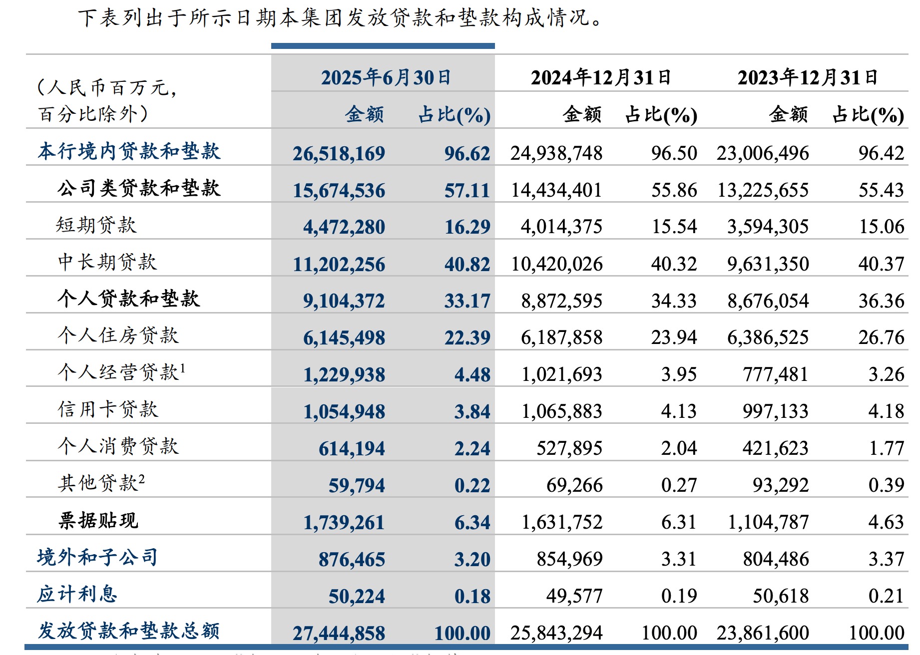 其中,個人住房貸款6.15萬億元,較上年末降幅0.68%;個人經營貸款1.23 萬億元,較上年末增幅20.38%;個人消費貸款6,141.94億元,較上年末增幅 16.35%。