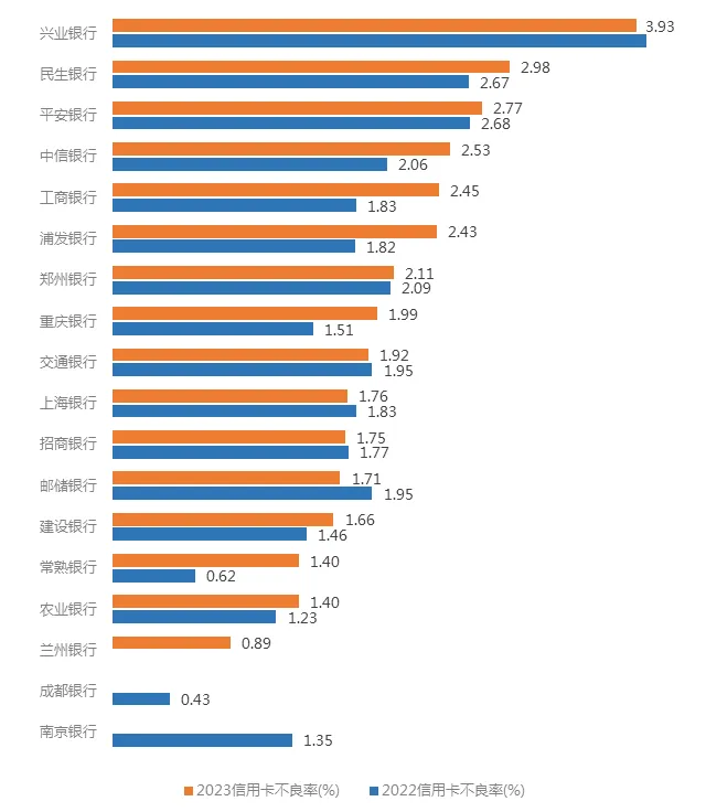 圖1:18家上市銀行2023年、2022年信用卡不良率情況