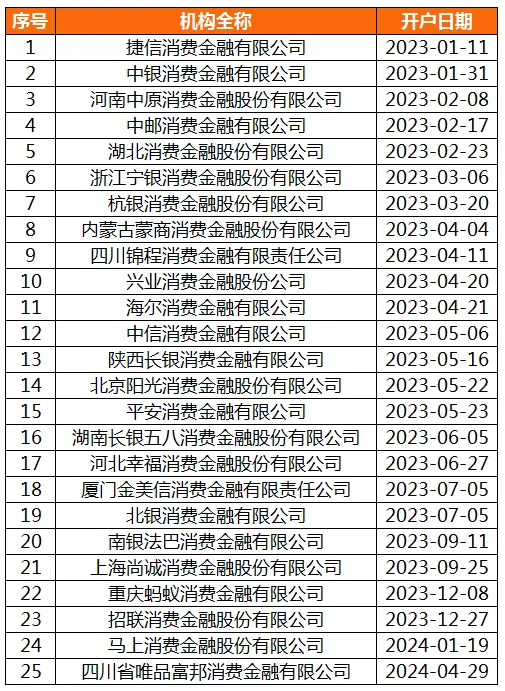 2023年,不良貸款轉讓試點擴圍,將消費金融公司納入試點范圍。2023年1月,捷信成為第一個開立不良貸款轉讓業務賬戶的消金公司,之后消金公司陸續開戶,截至2024年4月30日,在31家持牌消金中,已有25家消金公司開設了不良貸款轉讓業務賬戶。