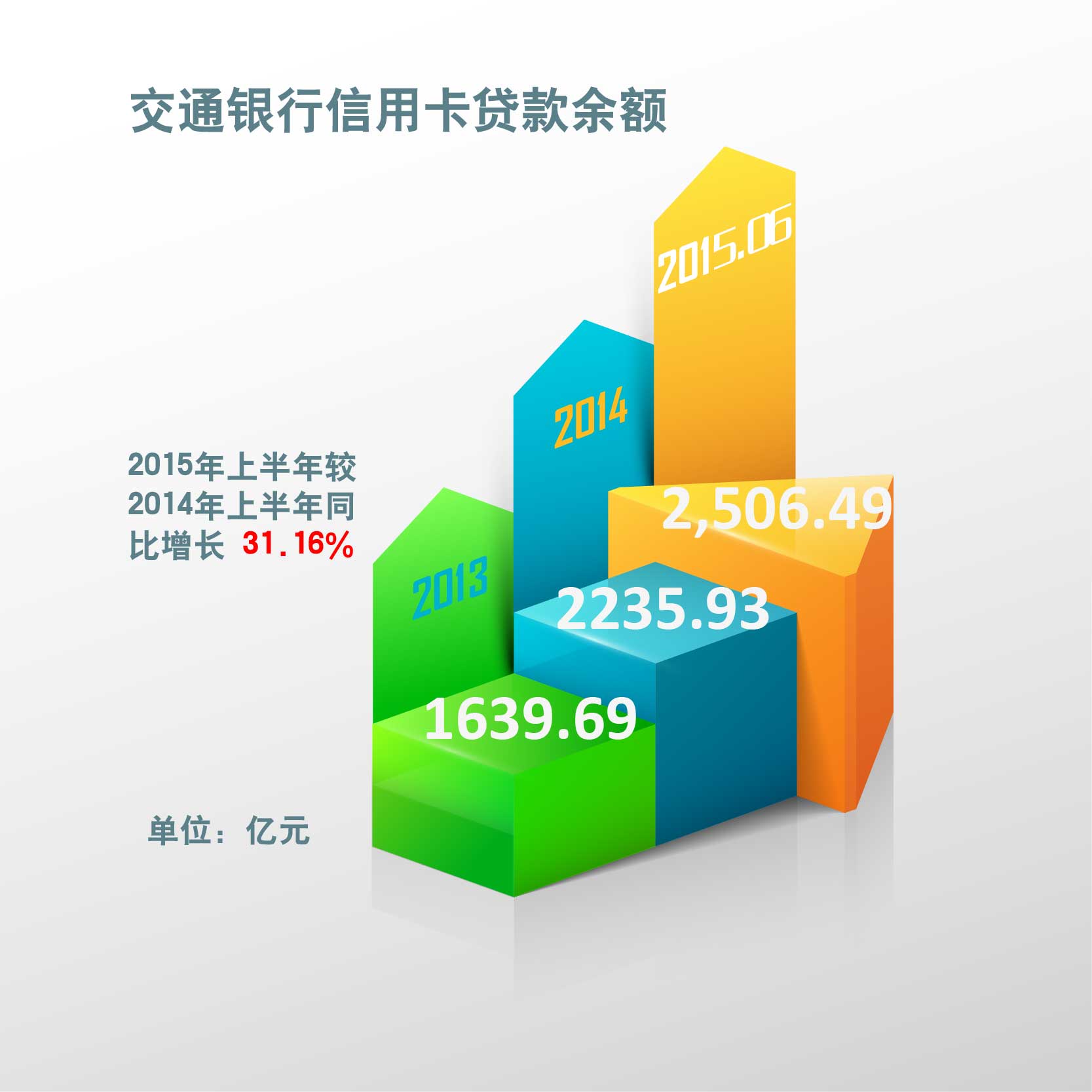 截止2015年6月末,交行信用卡貸款余額為2,506.49億元,同比增長31.16%。