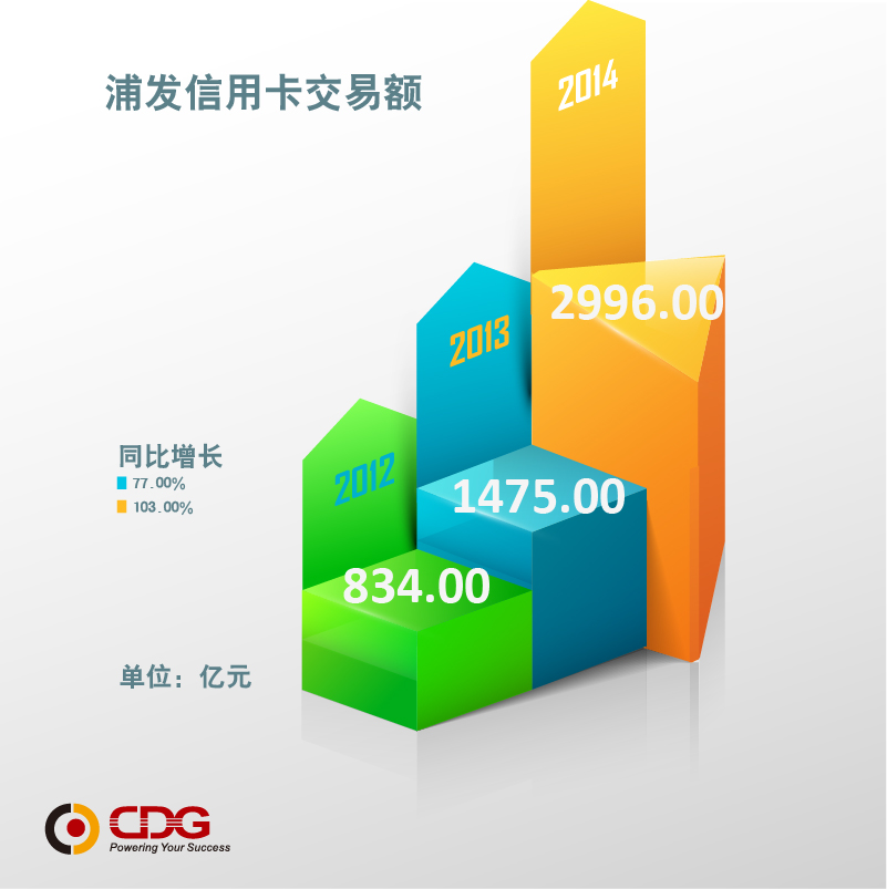 此外,浦發信用卡交易額在2014年實現翻番(見圖三),該成績與浦發信用卡推行的互聯網營銷和各類消費活動不無關系。
